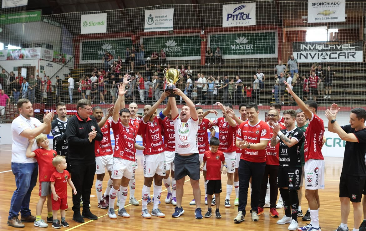 O Atlântico está em festa! Na noite deste sábado (19), o Galo aplicou uma goleada de 8 a 2 sobre o Minas e, além da vitória importante pela Liga Nacional de Futsal (LNF), também levantou a Taça Erechim 107 Anos, troféu simbólico entregue em comemoração ao aniversário do município.