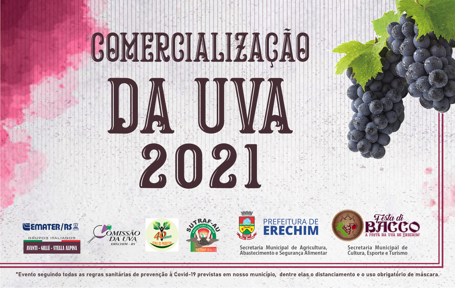 A solenidade que marca o início da safra da uva terá público restrito e vai acontecer na quarta-feira (13), às 15 horas, na propriedade do agricultor Luciano Bozz, na saída para Barão de Cotegipe. Já a comercialização será feita em cinco domingos respeitando as medidas sanitárias de combate a Covid-19. A vendas de uva, vinho e produtos de agroindústrias será feita no Pavilhão Multiuso, que fica ao lado da Feira do Produtor e do Mercado Popular, no Centro da cidade, próximo ao Terminal Rodoviário Urbano. A expectativa é que 20 produtores rurais e agroindústrias comercializem seus produtos. A organização não estimou a quantia de uva que deve ser vendida.