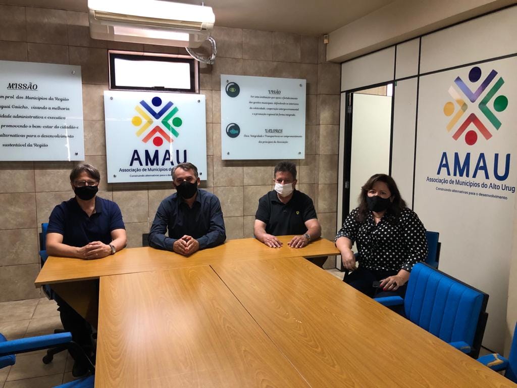 Os prefeitos de Getúlio Vargas, Maurício Soligo, e de Marcelino Ramos, Vannei Mafissoni (Delfim), estiveram reunidos na quinta-feira, 11, na sede da AMAU, com o delegado da Receita Estadual de Erechim, Amauri Secco, e com a assessora do senador Luiz Carlos Heinze, Fabiana Camargo, para dar andamento ao projeto de retomada do transporte ferroviário no Alto Uruguai.
