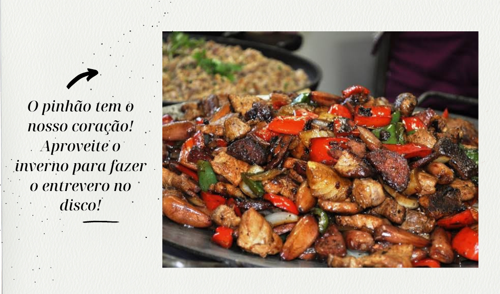 Como já mencionei, amo pinhão em suas diversas apresentações, e todo ano, aproveito dessa delicia! E não passo o inverno sem fazer o nosso tradicional entrevero no disco. Vou dividir com vocês a receita: