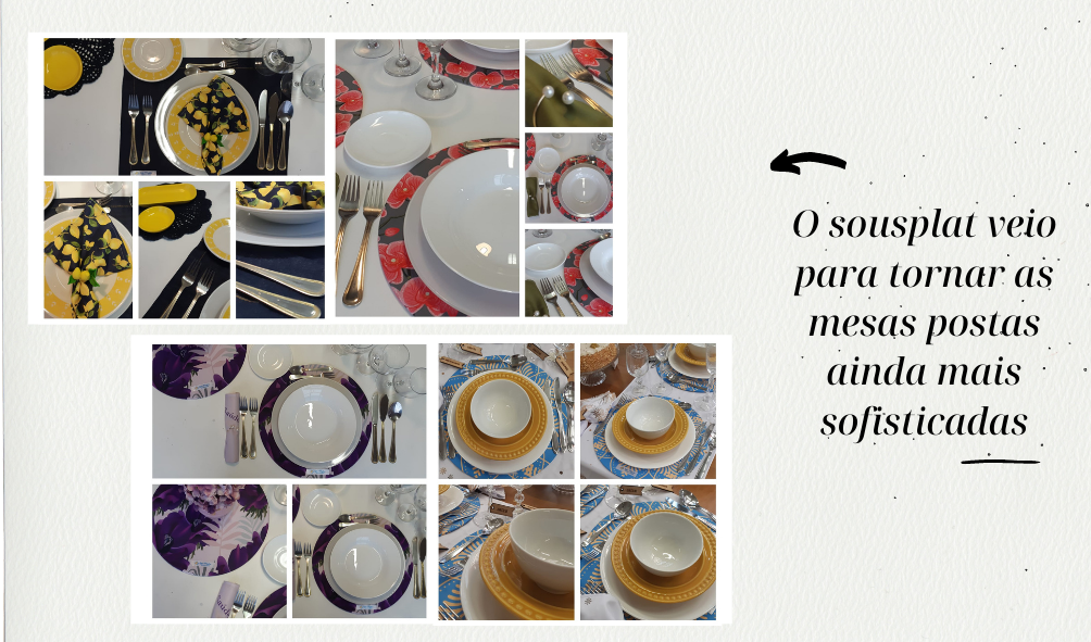 O sousplat veio para tornar as mesas postas ainda mais sofisticadas, tornando a decoração da mesa impecável e mostrando todo o cuidado na hora de expô-la. E, além de decorativo, é funcional. Serve como apoio para o prato e protege a mesa de respingos de alimentos e manchas.
