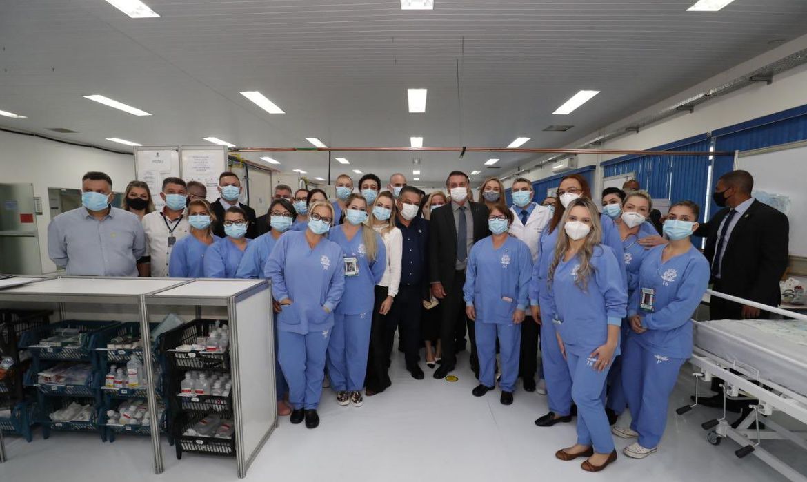 O presidente visitou as instalações do Centro Avançado de Atendimento Covid-19, em Chapecó (SC)