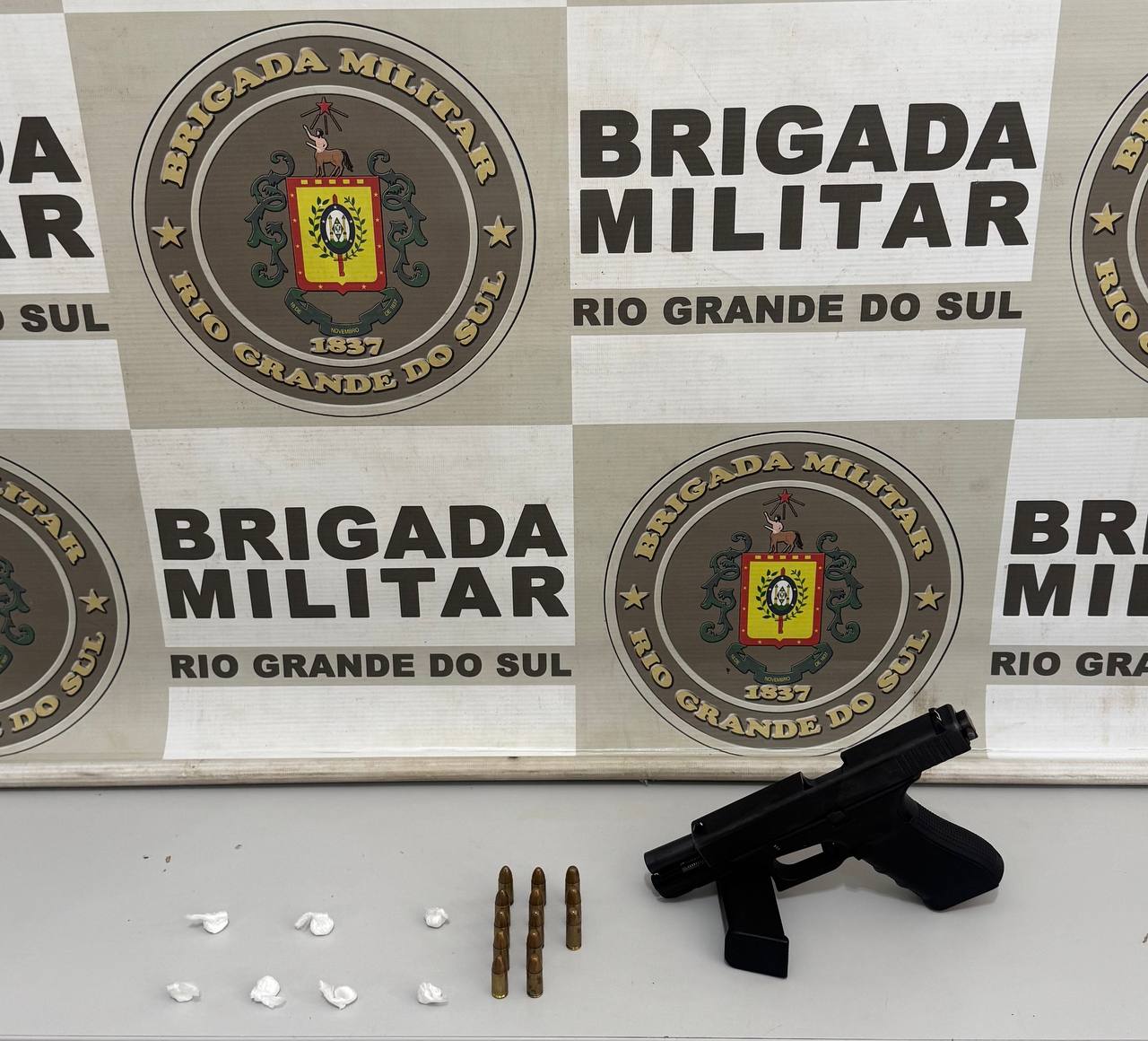 Durante a ação, os policiais apreenderam uma pistola calibre 9 milímetros, 13 munições do mesmo calibre, um carregador e sete porções de substância análoga à cocaína.