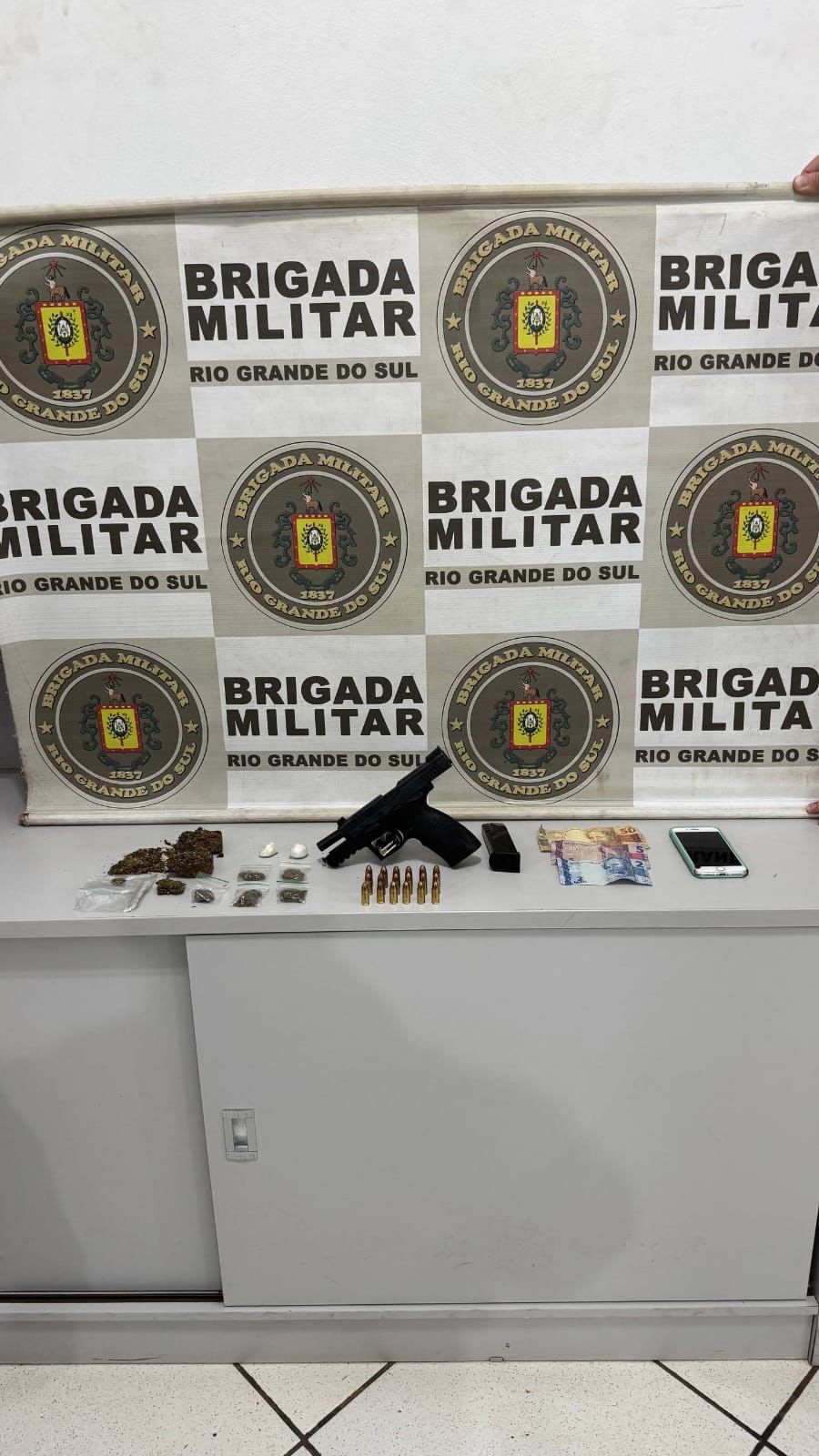 A Brigada Militar, por meio da 1ª Companhia Independente, prendeu um homem por tráfico de entorpecentes e porte ilegal de arma de fogo na noite de segunda-feira (9), no município de Getúlio Vargas.