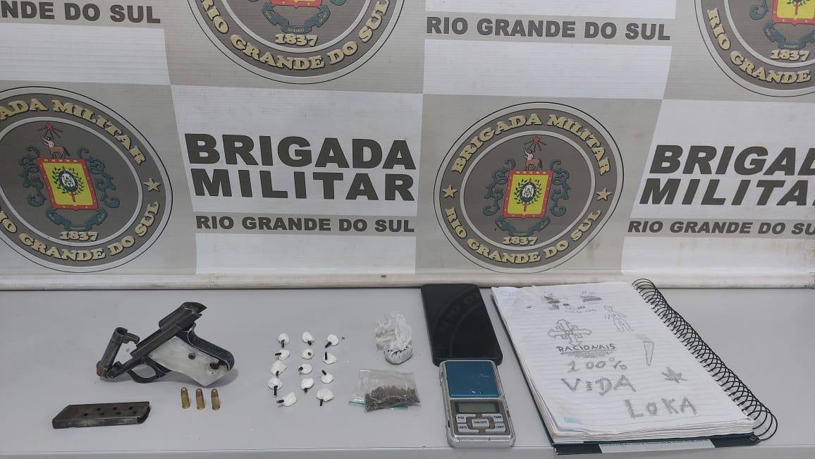 Durante a ação, os policiais apreenderam uma arma de fogo, munições, porções de substância análoga à maconha, porções de substância análoga à cocaína e uma balança de precisão. O indivíduo foi detido e encaminhado às autoridades competentes para os procedimentos legais.