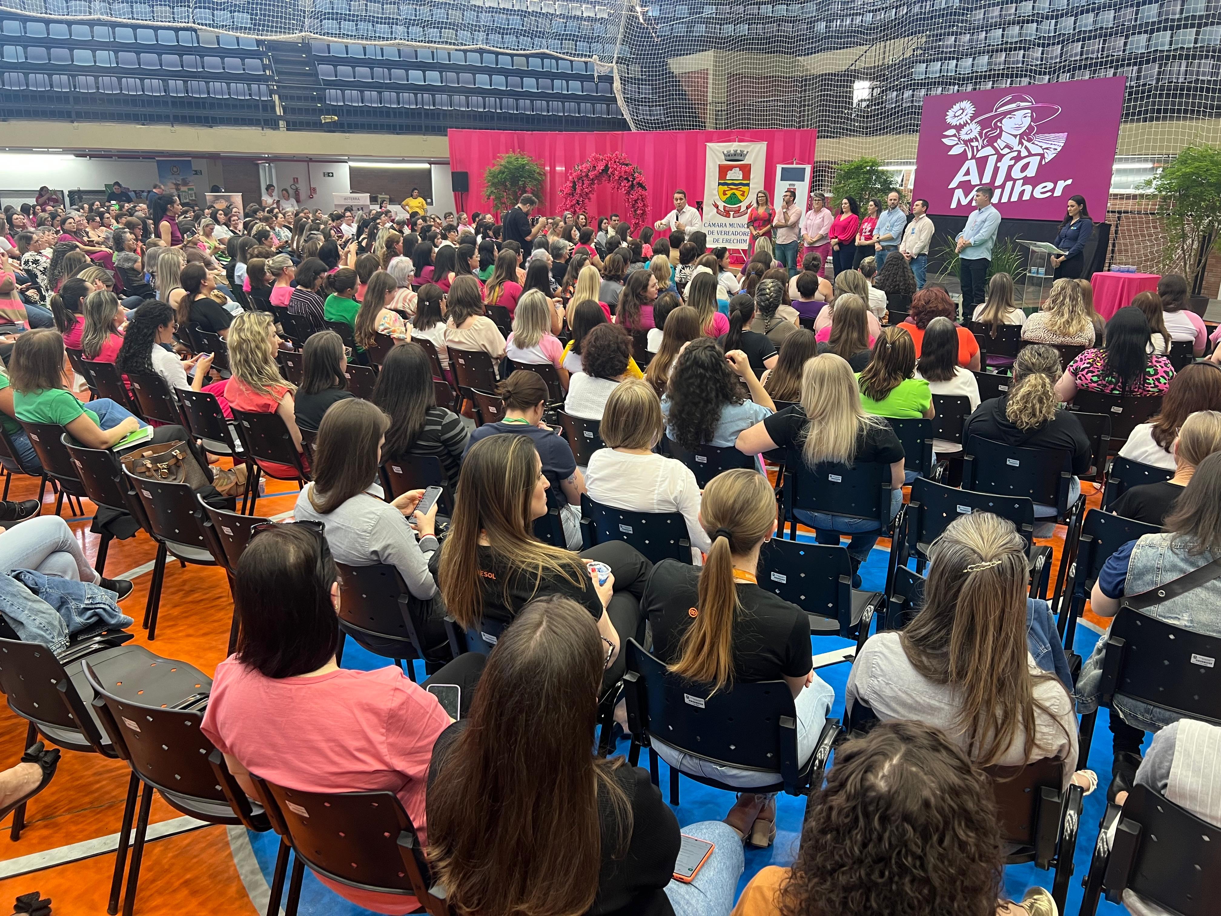 Na tarde desta quarta-feira (15), o Ginásio Poliesportivo Municipal Renan Carlos Agnolin sediou uma grande mobilização na promoção da saúde da mulher. O evento, alusivo ao Outubro Rosa, reuniu cerca de 700 mulheres em um momento de conscientização, informação e acolhimento, com foco na prevenção do câncer de mama e do colo do útero.
