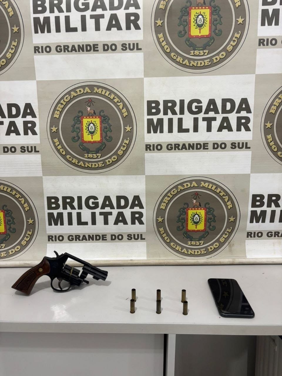 Durante a ação, os policiais apreenderam um revólver calibre .38, além de seis munições deflagradas do mesmo calibre e um telefone celular, que podem auxiliar no andamento das investigações.