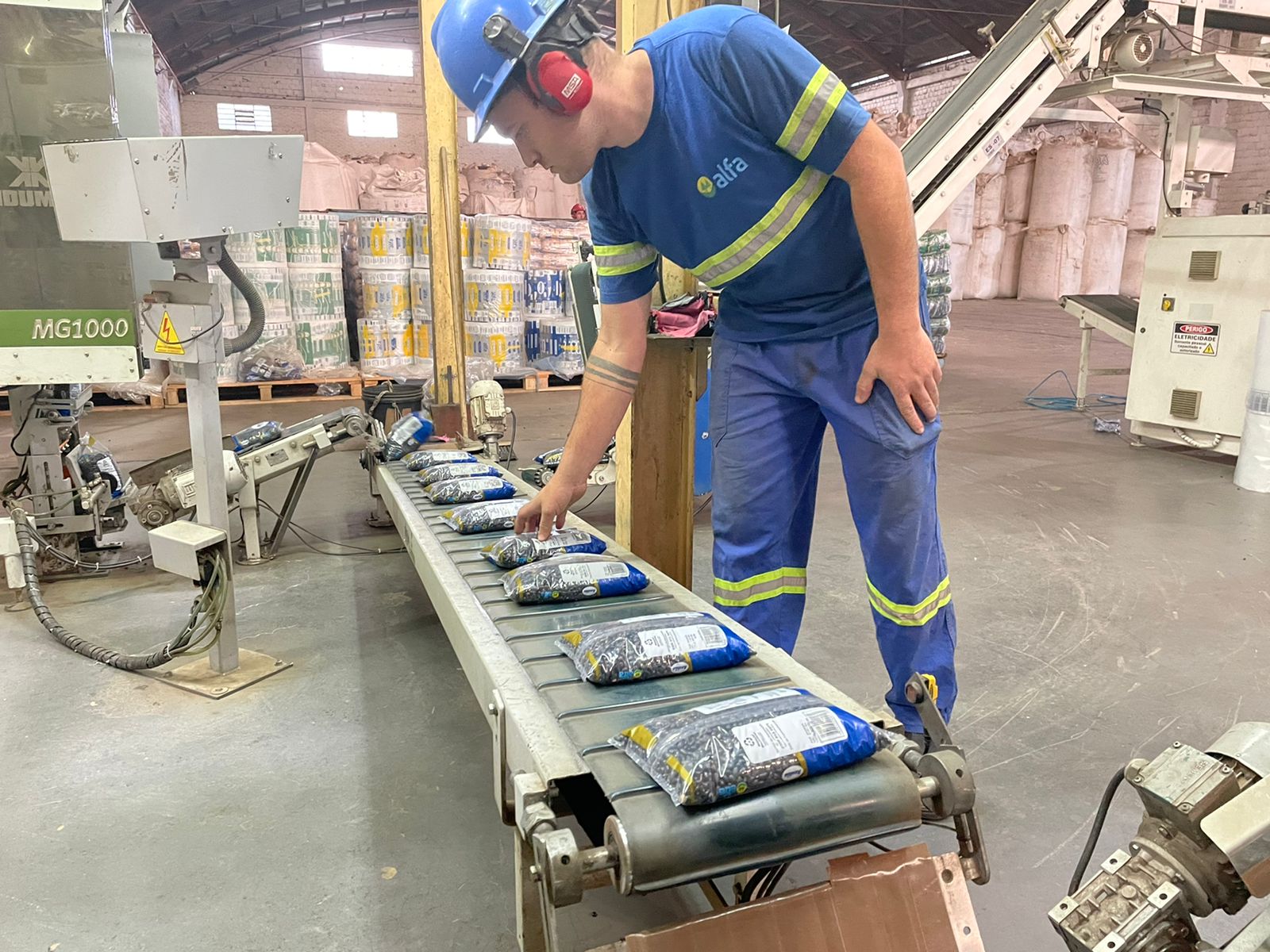 Após, o feijão é destinado para o processo de empacotamento na embalagem personalizada com as marcas Alfa e Azulão, e destinado aos supermercados.