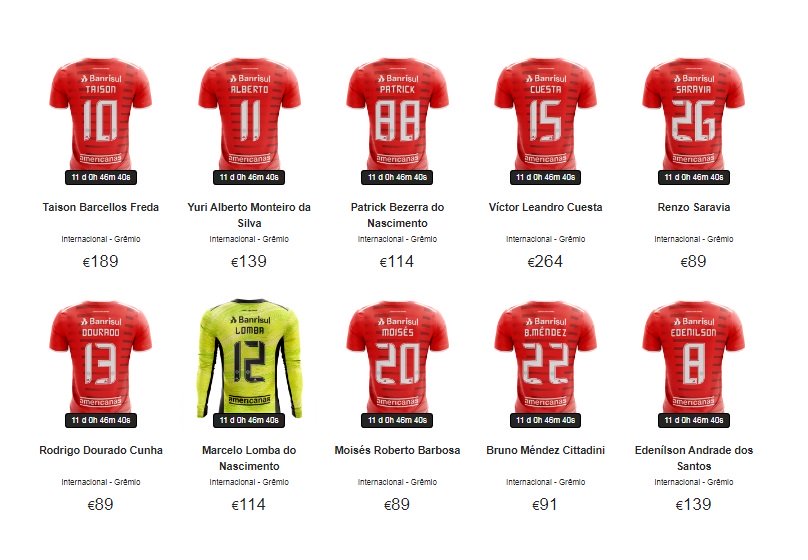 Inter oferece em leilão na internet camisas usadas pelos jogadores no último Grenal