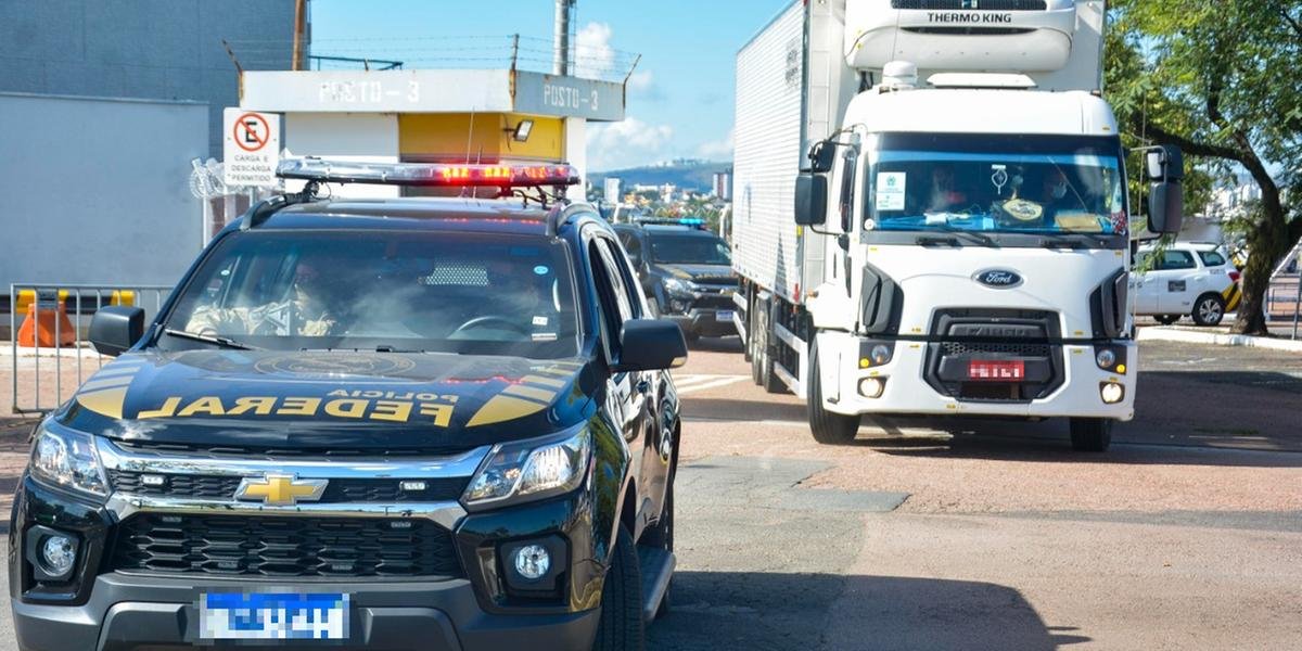 Duas viaturas da Polícia Federal realizaram a escolta do caminhão até a sede da Central. Segundo a Secretaria Estadual da Saúde (SES), com a nova remessa a ideia é avançar na vacinação do idosos (atingir 100% da faixa etária até 60 anos) e começar a vacinar pessoas com comorbidades.