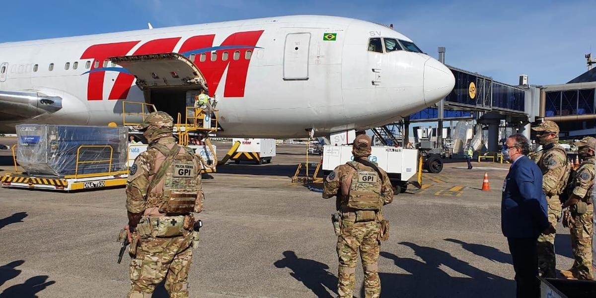 Novo lote com mais de 300 mil doses de vacina contra a Covid-19 chega ao RS | Foto: Polícia Federal / Divulgação / CP