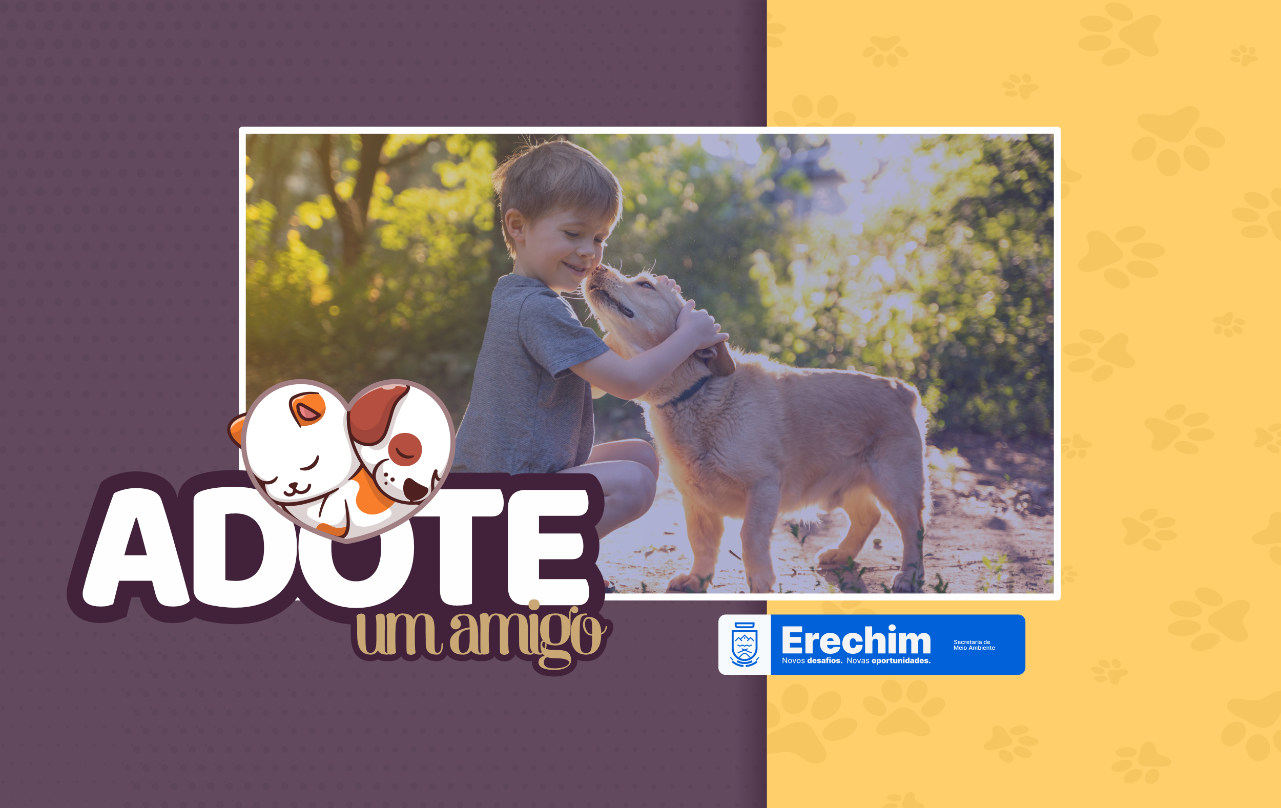 A Prefeitura de Erechim, por meio da Campanha Adote um Amigo, realiza um conjunto de ações promovidas pela Secretaria de Meio Ambiente para enfatizar a importância de dar um lar a animais abandonados e valorizar a proteção daqueles que estão nas ruas.