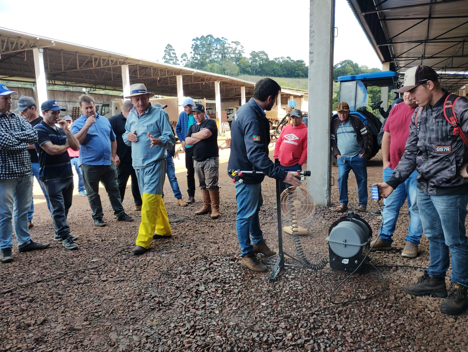 Na parte prática, os produtores participaram de atividades com recomendações para uso correto e seguro, como análise de componentes de equipamentos de pulverização, dentre elas a regulagem das pontas do pulverizador para aplicação, tamanhos de pontas do equipamento para eficiência do produto, controle de vento, da temperatura, dentro outros itens para uso correto e seguro na aplicação.