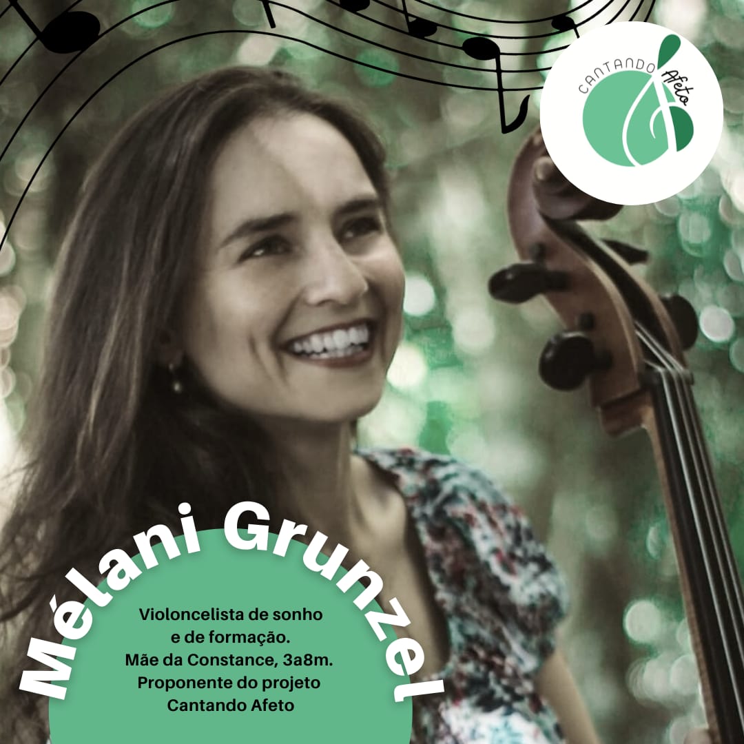 Foi pensando nisso que a bacharel em Música / Violoncelo Melani Grenzel, propôs o projeto Cantando Afeto que foi inscrito e selecionado no Edital Erechim Cultura do FAACE. O projeto busca promover a realização de oficinas on-line de musicalização, direcionadas para mulheres grávidas e puérperas, estimulando a criação com apego e mostrando que a música pode auxiliar os pais a firmarem vínculos afetivos estreitos com seus filhos, sendo uma forma prazerosa de educar e contribuindo para o desenvolvimento cognitivo, motor, social e emocional dos bebês.