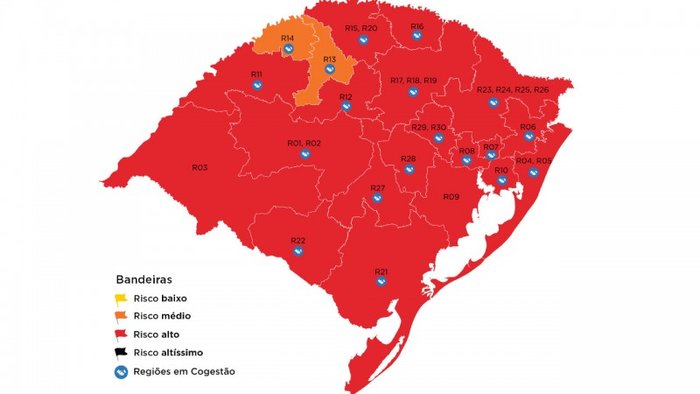 Na análise técnica, o governo ainda ressalta que os municípios que fazem parte das regiões de Santo Ângelo e Passo Fundo podem adotar protocolos de bandeira laranja, pois aderiram ao sistema de cogestão do Distanciamento Controlado — o mesmo vale para as demais 17 regiões em vermelho que estão na cogestão.