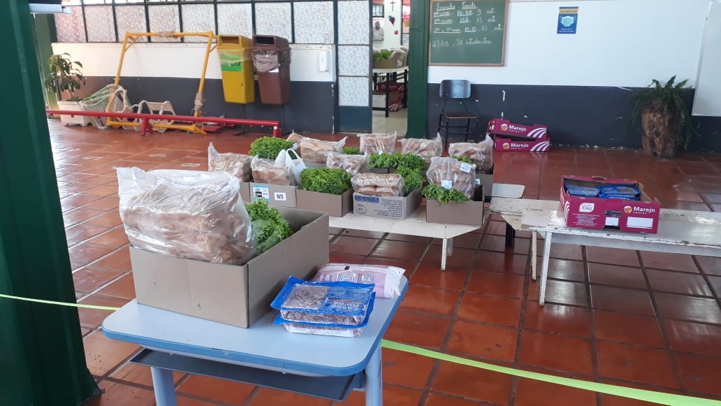 O kit distribuído no mês de maio contém alface, carne moída, iogurte, pão de cachorro quente e mamão. A quantidade de itens entregues teve uma redução em virtude do retorno das aulas presenciais escalonadas. Os estudantes recebem alimentação na escola 15 dias e para os 15 dias de atividades remotas, foram entregues alimentos no Kit Alimentação. O Conselho de Alimentação Escolar acompanha todo processo, realizando o seu papel na fiscalização dos recursos e da qualidade dos alimentos.