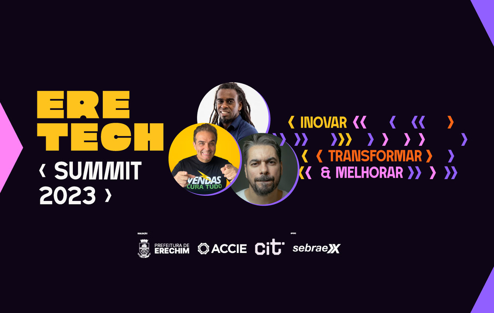 Seguem abertas as inscrições para o EreTech Summit 2023, a primeira edição do evento que tem a proposta de ser uma imersão de inovação, tecnologia e empreendedorismo, promovido pela Prefeitura de Erechim, Associação Comercial, Cultural e Industrial de Erechim (ACCIE) e Centro de Inovação e Tecnologia (CIT), com apoio do SebraeX. O EreTech Summit 2023 será no dia 24 de novembro, com credenciamento a partir das 7h30, início das atividades às 8h30, se estendendo até o meio-dia. Na parte da tarde, as atividades serão iniciadas às 13h30, seguindo até por volta das 19 horas. O evento será no Polo de Cultura – CIT; e contará com uma estrutura com dois palcos, expositores da área de startups e de educação, restaurantes e foodtrucks, além de um espaço de convivência e troca de contatos.