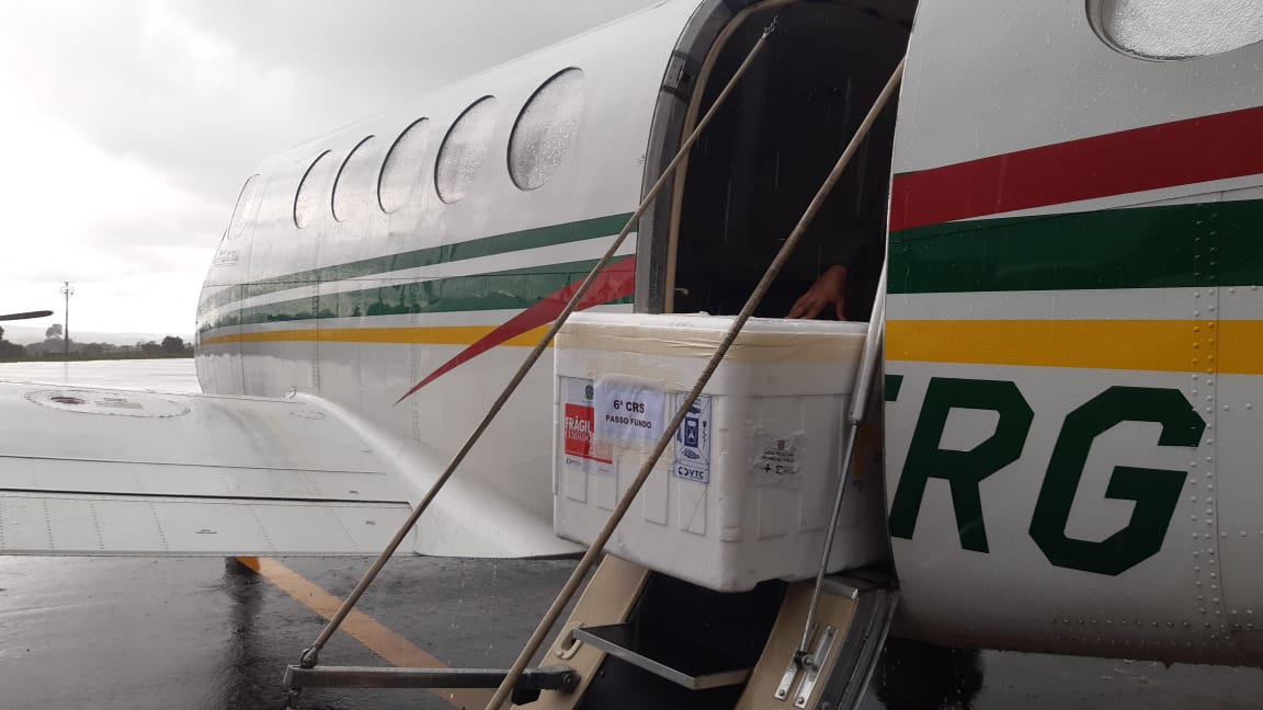 Chegou no fim da manhã desta segunda-feira (25), no Aeroporto Comandante Kraemer em Erechim, o segundo lote de vacinas contra a Covid-19. Estas são de produção da Oxford e AstraZeneca. O avião que veio de Porto Alegre trouxe em torno de 8,5 mil doses para as coordenadorias de Saúde de Erechim e Passo Fundo. A 11ª CRS recebeu 1826 doses. 1060 doses serão disponibilizadas para o município de Erechim, que deve seguir o plano de imunização aos profissionais de linha de frente na área da saúde. A vacina da Oxford/AstraZeneca tem a segunda dose prevista para 12 semanas após a primeira.