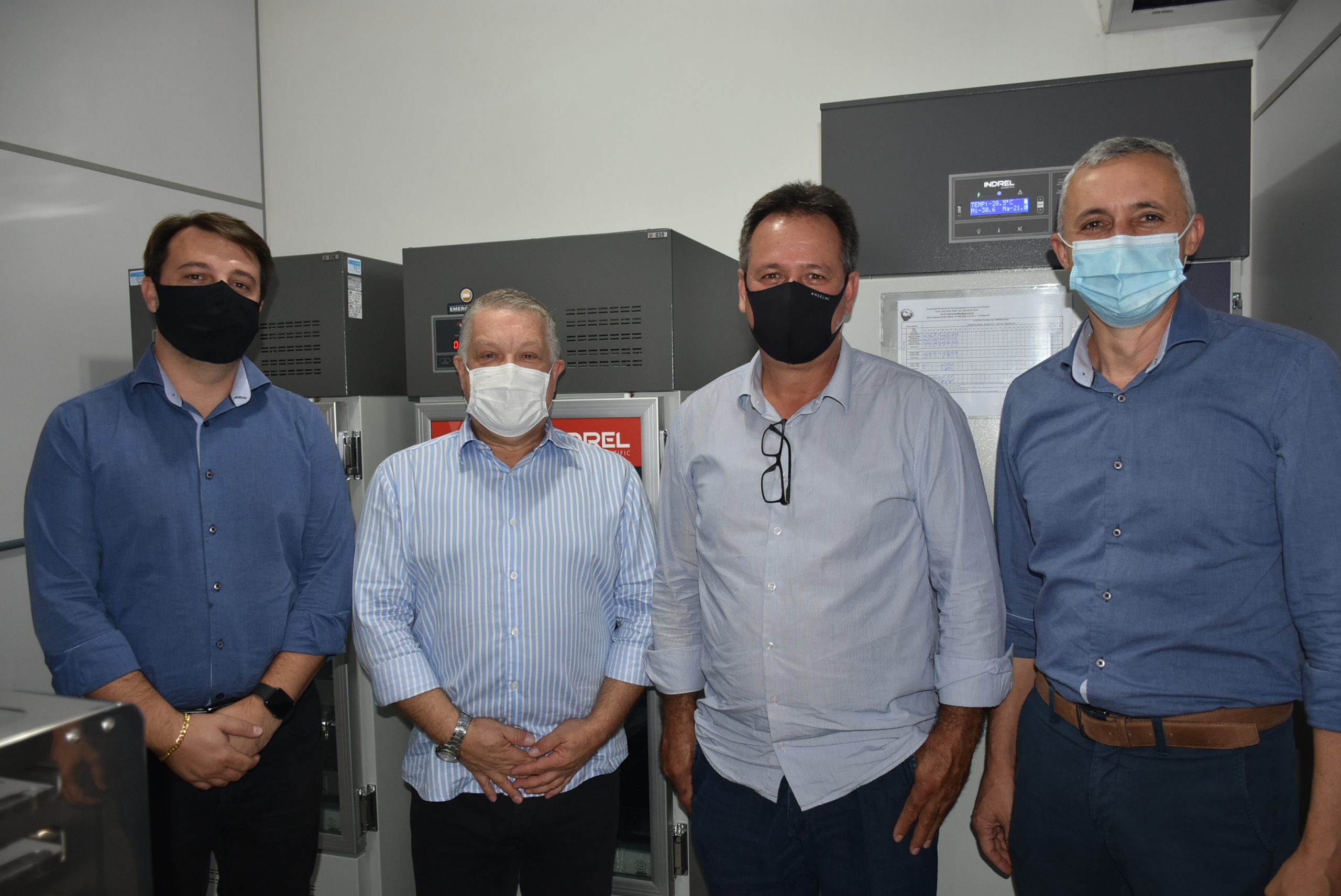 Juntamente com o Presidente do Banco de Sangue, Alexandre Lyrio, o Presidente da Sicredi UniEstados Adelar Parmeggiani e os Gerentes de Agência, Alecsander Bertolla e Carlos Cavalli.