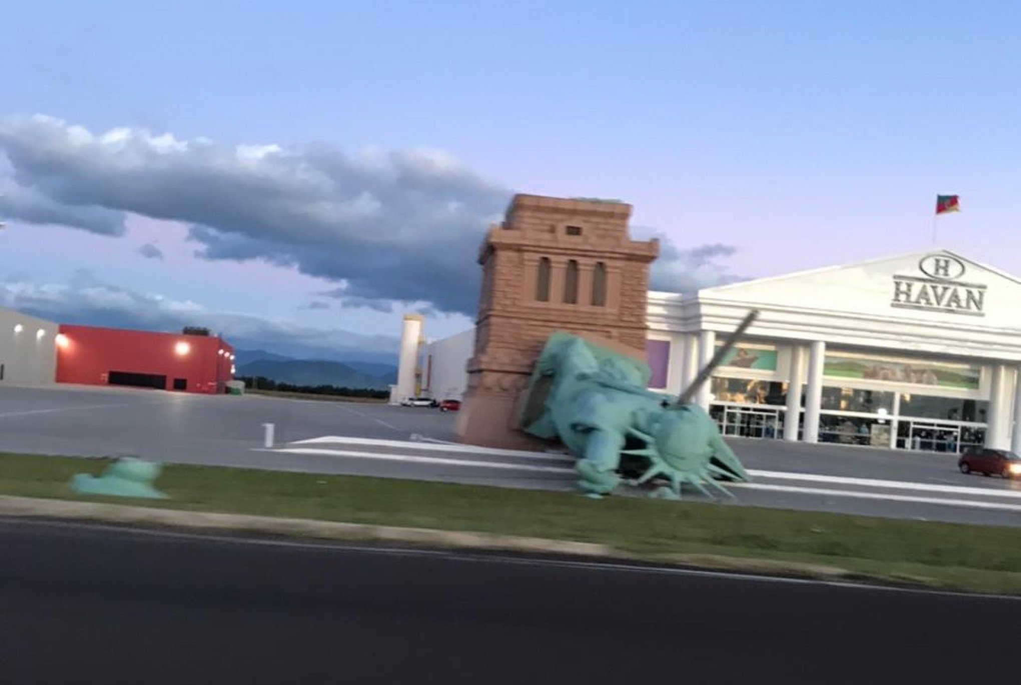 A ventania provocada por um ciclone no RS derrubou a estátua da loja Havan, em Capão da Canoa, no litoral norte. O corpo de bombeiros recebeu o chamado por conta da queda por volta das 07h da manhã desta segunda-feira (24). Ninguém ficou ferido, mas alguns pontos da cidade seguem sem luz.